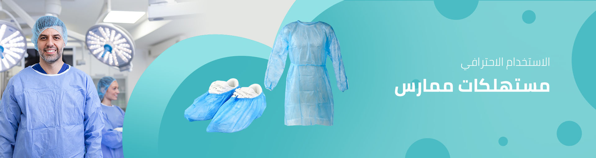 جاون طبيب، جاون مريض، غطاء رأس طبي وغطاء قدم طبي وأدوات للاستهلاك اليومي في مختلف العيادات التخصصية.